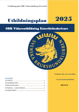 Utbildningsplaner för exteriörbeskrivarutbildning, vidareutbildning exteriörbeskrivare och anatomiutbildning.