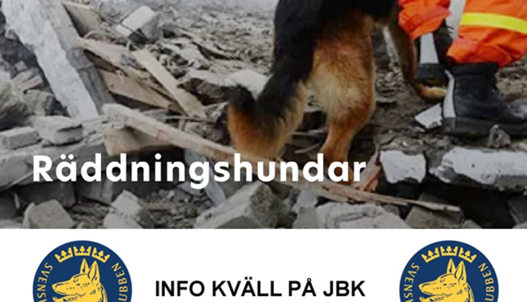 Jönköpings Brukshundklubb bjuder in till infokväll om räddningshundar. För alla som är nyfikna på detta spännande ämne. Gratis att delta och ingen anmälan krävs. Självklart finns det fika. Varmt välkommen!