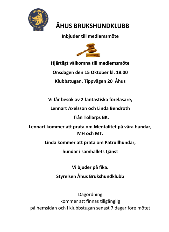 Medlemsmöte är en viktig funktion för information och medlemsbeslut, det är därför viktigt att vara med för att kunna påverka det som rör klubben.