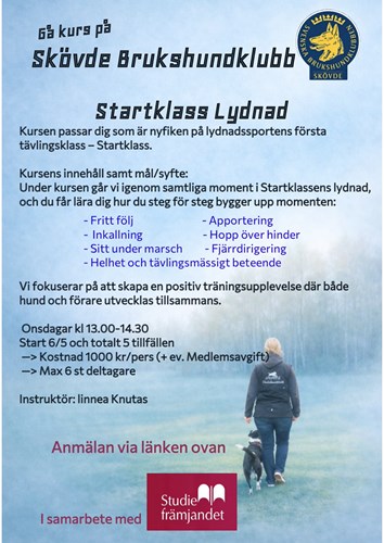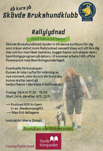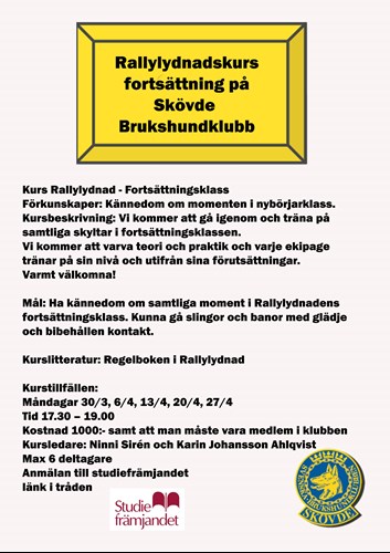 Instruktör Sara Lundin - Lydnadslydnad 22 april kl 18-10.30 Här får ni en inblick i lydnadsgrenen, vad krävs och hur tränar man.