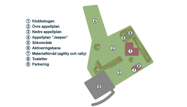 Belysning, toaletterna (bajamajor) och träningsutrustning för rallylydnad och agility är tillgänglig för alla medlemmar och kräver inte tillgång till stugan.