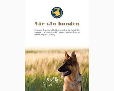Svenska Brukshundklubbens policy för hundhållning och vår relation till hunden vid uppfostran, utbildning och träning. Format: A5, 8 sidor.