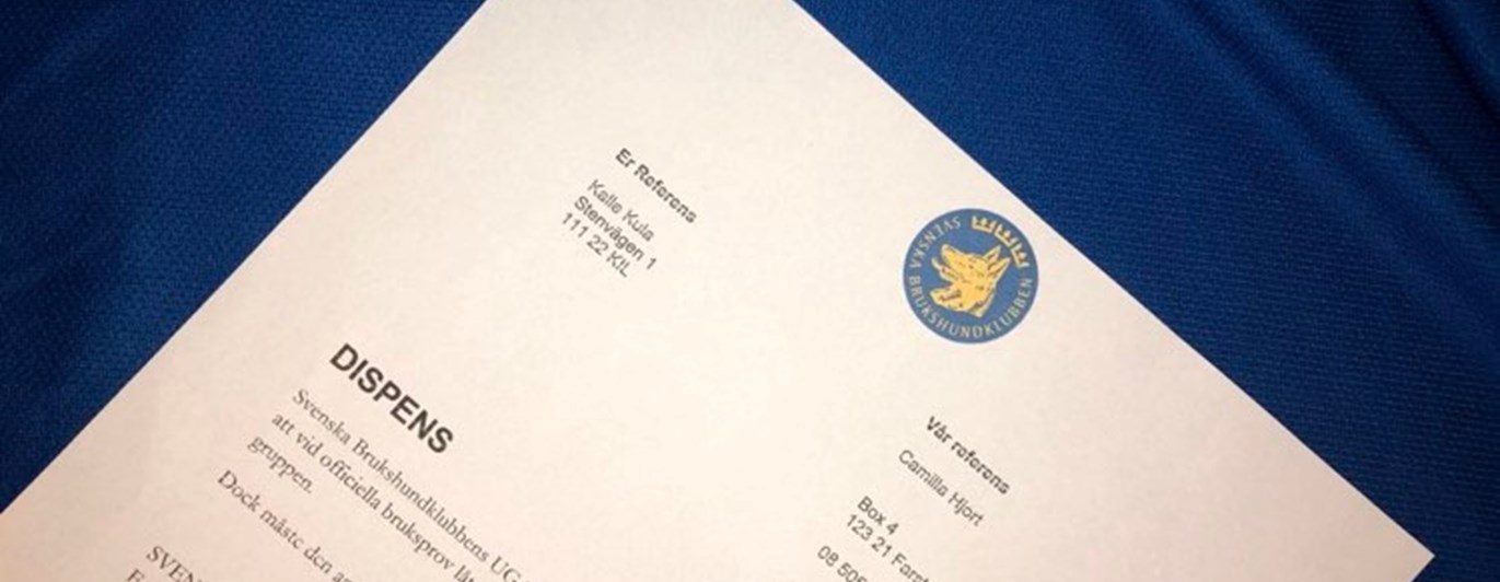 Skicka dispensansökan och läkarintyg helst via e-post till: tavling[at]brukshundklubben.se