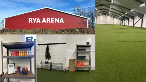 Här följer en kort beskrivning av allaktivitetshallen Rya Arena som är en inomhushall för träning av hund och andra aktiviteter. Träningsytan är belagd med 50x24 m konstgräs.